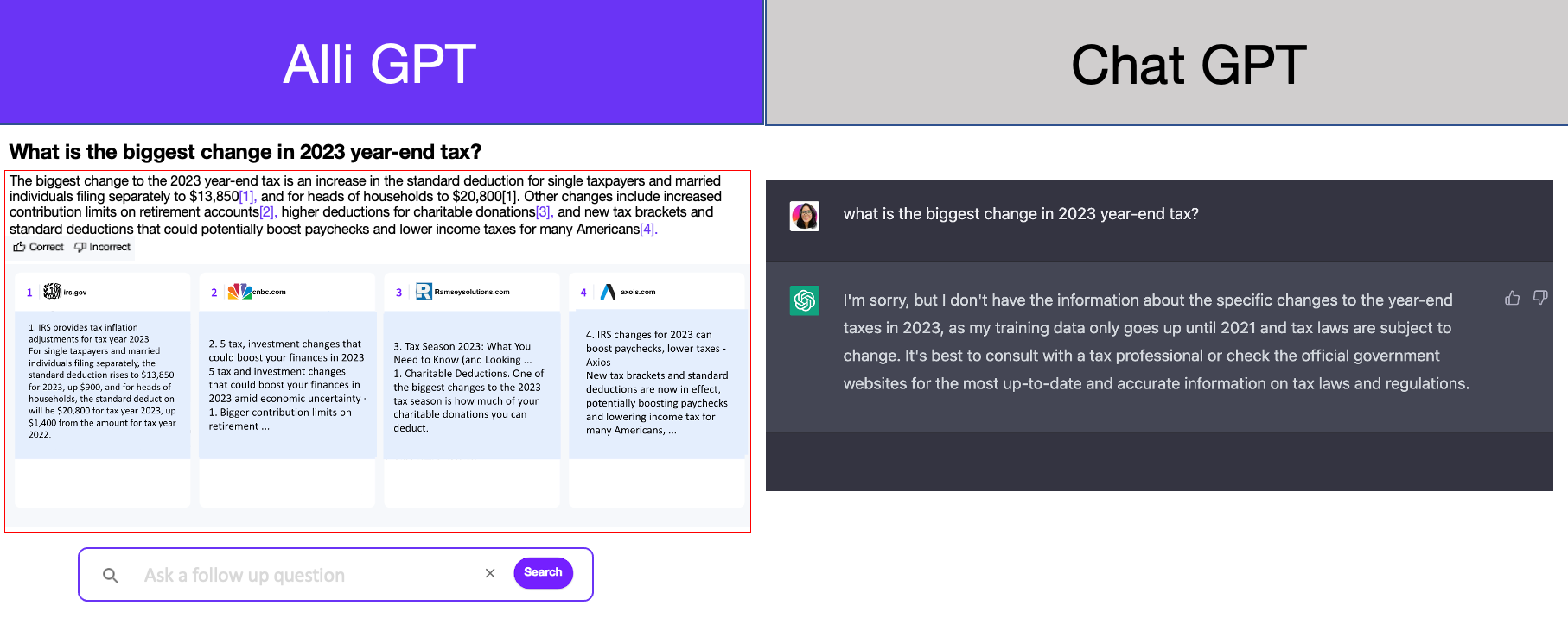 In contrast to chat GPT, Alli GPT gives users the ability to preview the source documents and sites, enabling them to trust the accuracy of the answers. This is especially important in B2B businesses where time-sensitive information and information scattered across multiple teams can be integrated and provided in one place. Alli GPT is a game-changer for businesses looking to harness the power of AI for their operations.