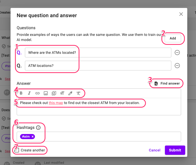 - Add hashtags for the Q&A pair. The hashtags are used to organize the database and limit the search result.