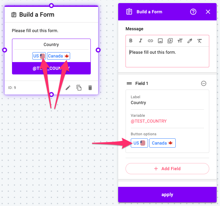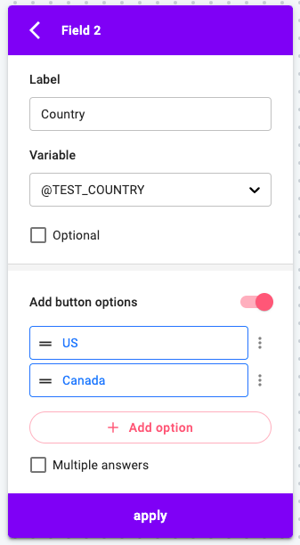 Once you finish designing the field, click the apply button to save. Repeat from clicking '+ Add field' if you want to add more fields.