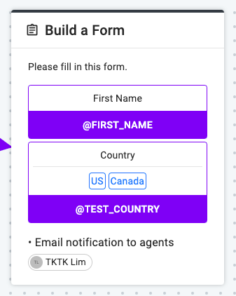 Using the new 'Build a Form' node, you can ask customers to input a series of information to be stored and send it to agents via email. This new feature is handy when there's any required information you should get from customers.