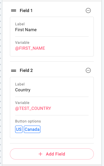 You'll see the field editor as shown below. Put the name for the field to be shown in the skill and select the variable to store the information customers fill in. If you want to make an optional field, check 'Optional'.
