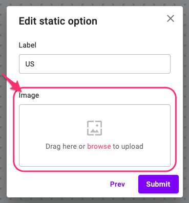 Also, you can add an image to any type of button option. After selecting the option type, simply browse or drag the image to the image field.