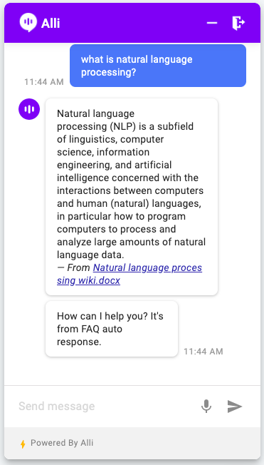 Alli will search for the answer from the documents uploaded when there are no relevant Q&A pairs and will show the result with the link to the source document.