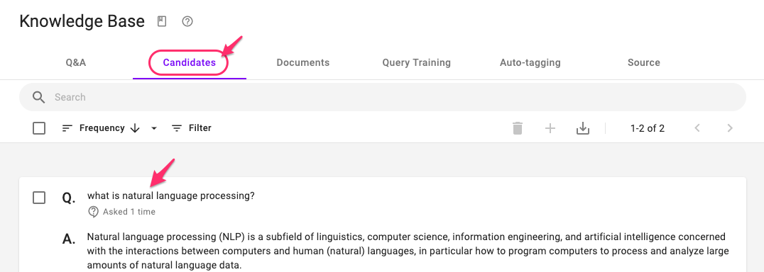 The question and the answer will be added under the Candidates tab so that you can easily add them to the Q&A later.