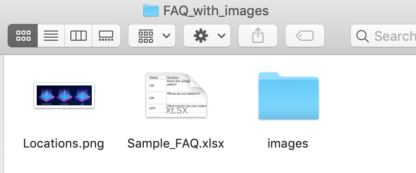 Step 1. Prepare your Q&A file in tsv, csv, or xlsx format, and prepare image files you'd like to add to the answers in the same location with the Q&A file. Gif, jpg, and png formats are supported.