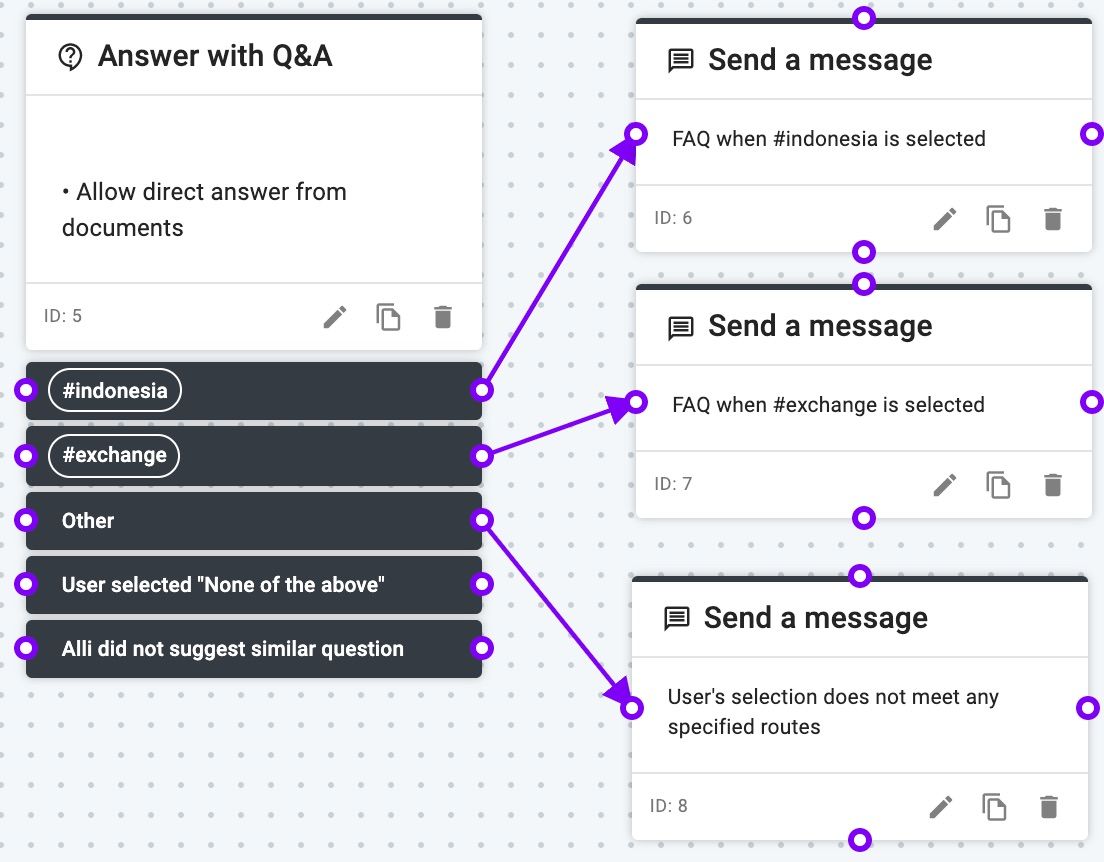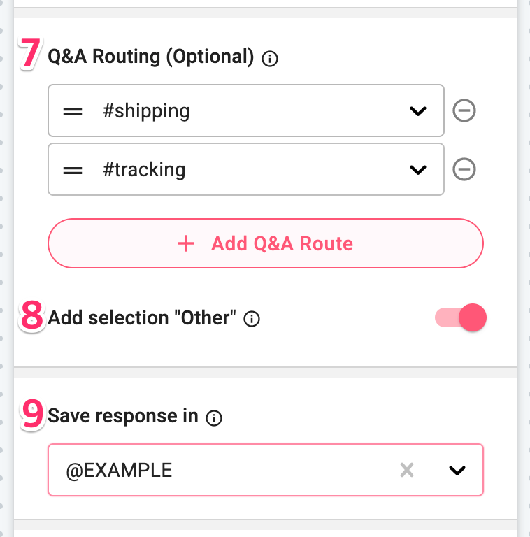 7. When your user selects Q&A entries with the hashtags added here, then you can set a different route for every hashtag.