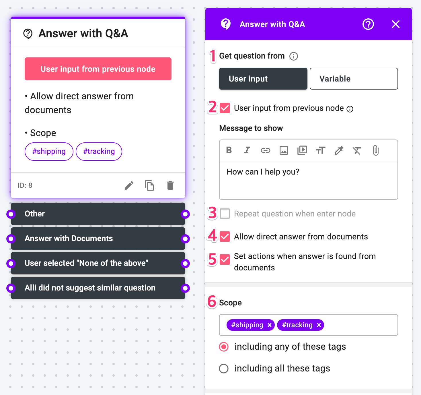Q&A node is one of the most important nodes in Alli. You can check out more user guides related to Q&A nodes using the links below.