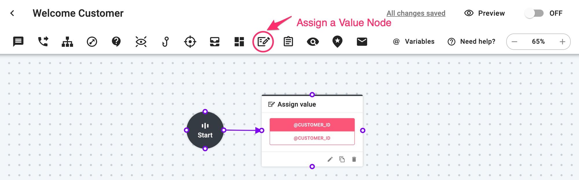 Assign Value node makes updating your users' information more straightforward. #variable