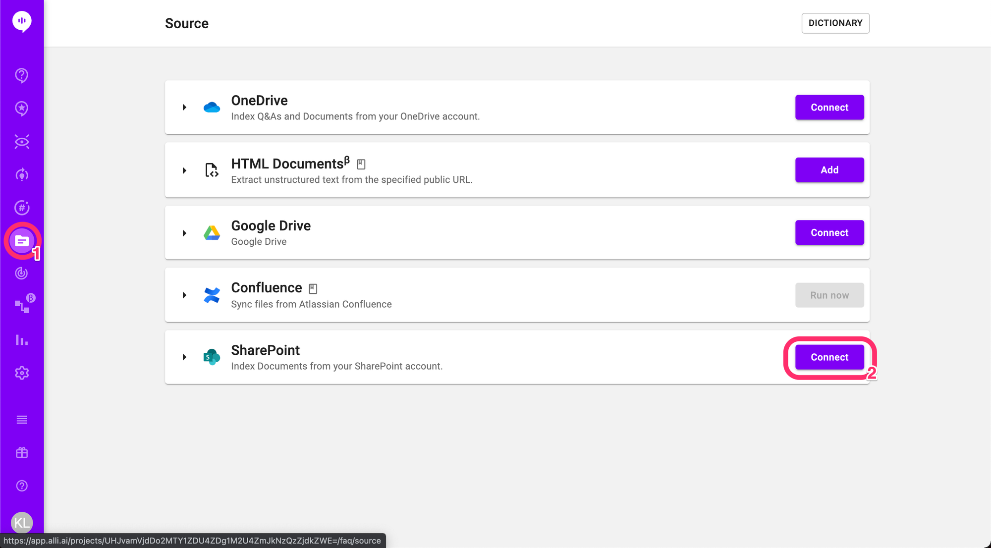 Alli User Guide - Connect to SharePoint as a Knowledge Base Source