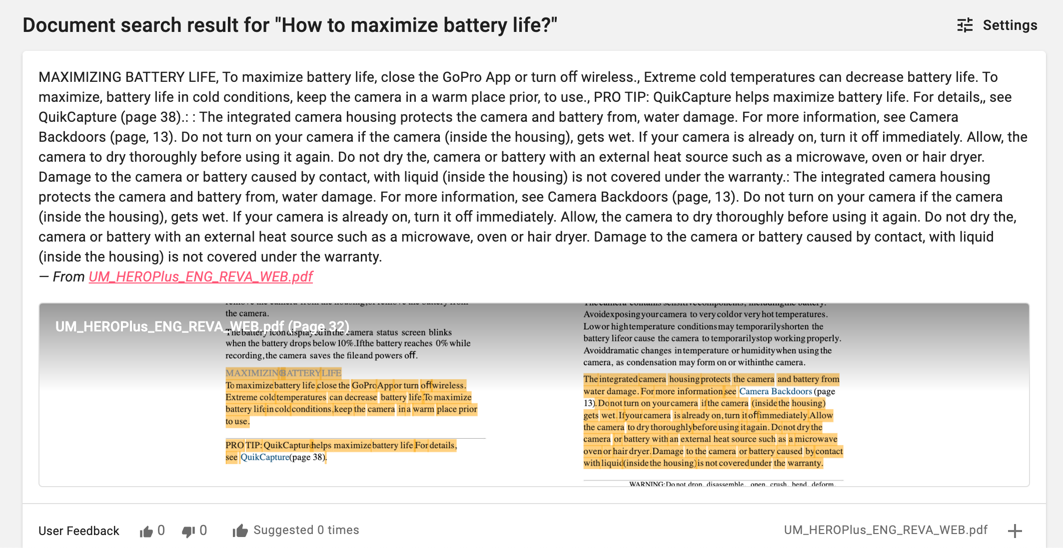 - Agent Feedback for Q&A and Documents Search Result