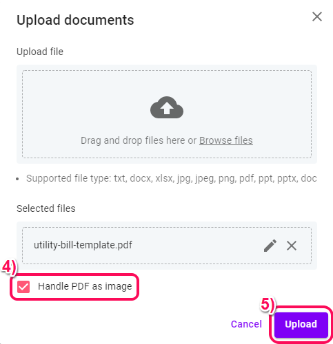 3) Either drag documents onto screen or click on browse files