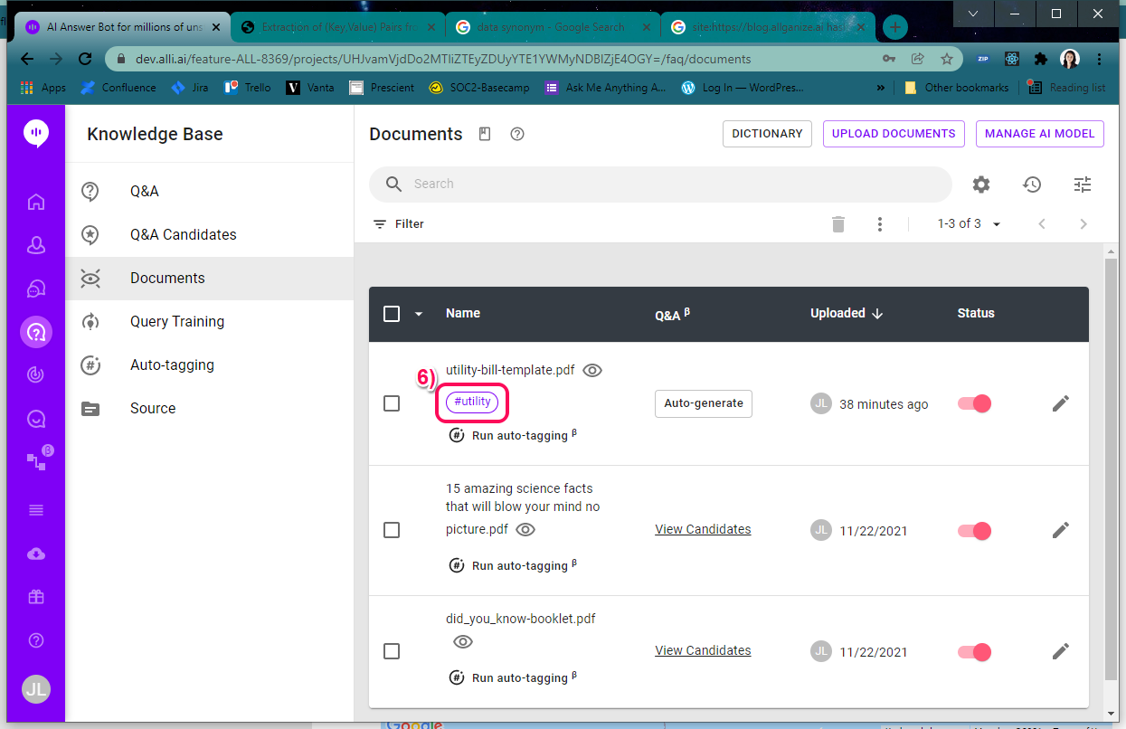 *Please remember that documents need to be uploaded under the Knowledge Base > Documents, and saved with one of the target hashtags.