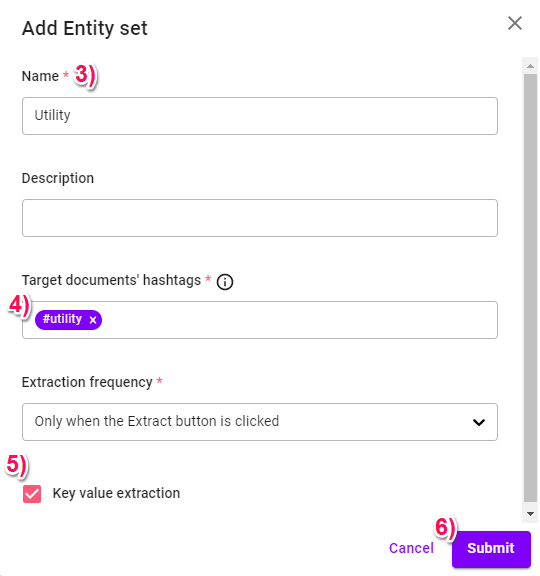 2) Add new extraction by selecting '+ Add Entity Set' button