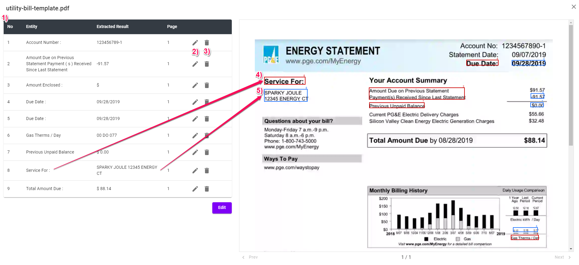 Key-value extraction is an automation that will identify structured pairs from unstructured data. All potential key and value pairs are extracted from documents automatically and then can be edited and/or downloaded.