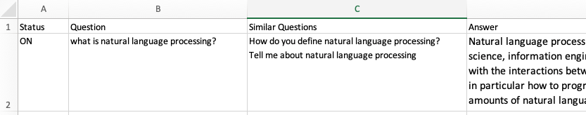 You can also choose to add multiple questions at once by uploading a Q&A. Simply add the 'Similar Questions' column in the file and add the questions, separated by a line break.