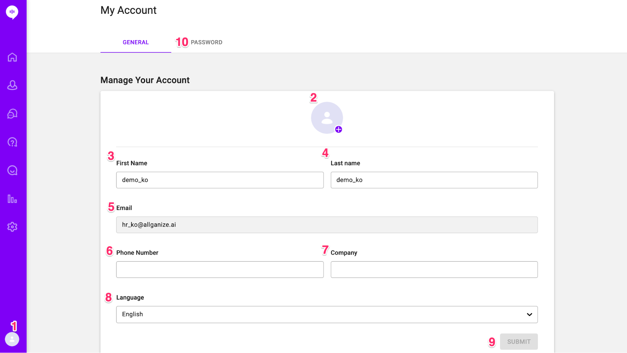 - Language: Language preference of the dashboard. You can choose between English, Japanese, and Korean.