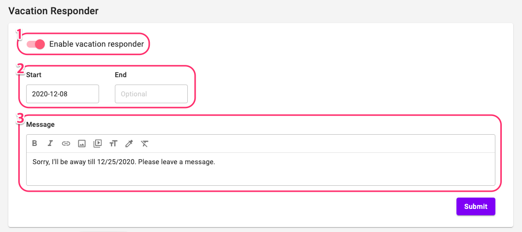 - Enable the vacation responder.