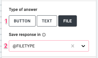 - Save response in: You can save your users’ response in a File type variable. You can create variables in the Project Settings page or from the dropdown menu here.