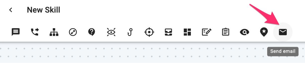 Send Email node icon is located on the right end of the node icon bar.