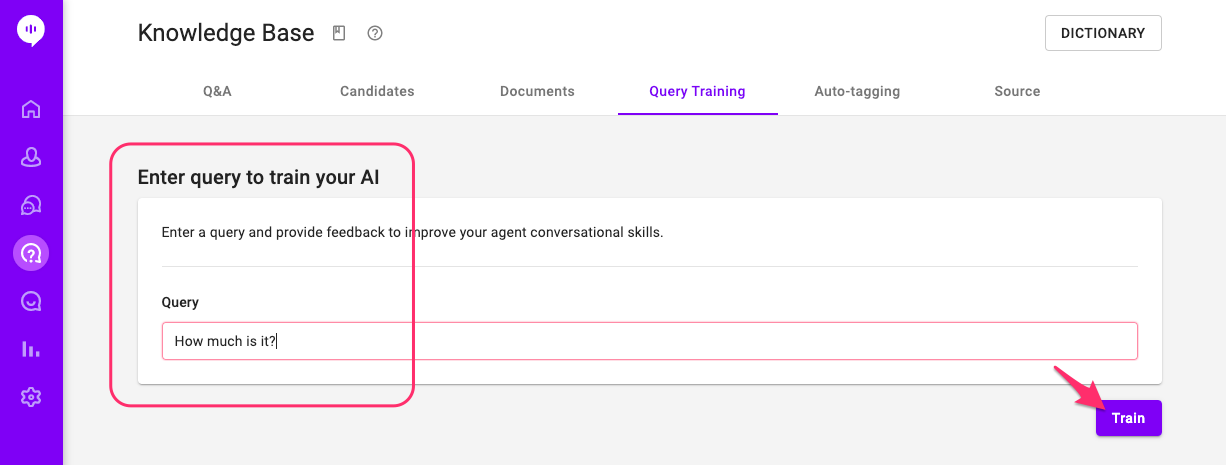 - Train the AI using Query Training to update the Adjusted Score of each Q&A. The Adjusted Score decides if the Q&A will be shown as a possible answer to the question.