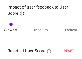 The default value, for this setting, is zero (slowest), which means the customer's selection doesn't affect the Q&A search results. You can adjust the value as per your requirements. You can also reset all User Score values here.
