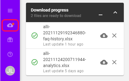 Files that are ready to be downloaded while you are logged out can be found and downloaded from the same menu. Red dot next to the download icon will indicate that you have files ready to download.