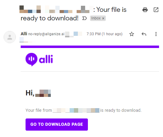 An email notification will be sent to you as a reminder if files are ready for download while you are logged out.